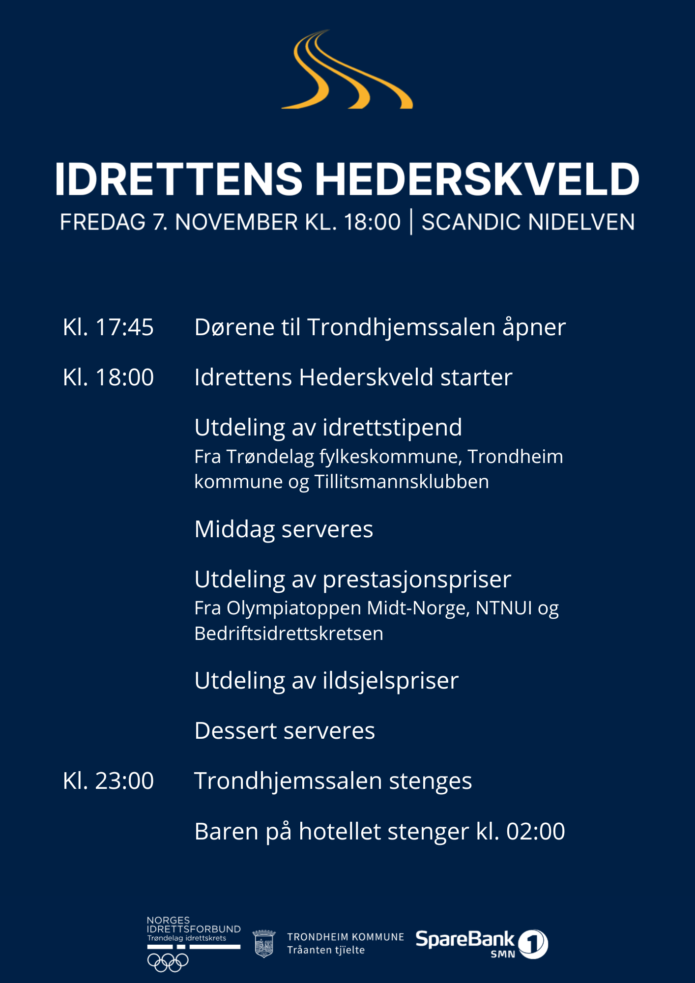 Idrettens Hederskveld er for alle, men vær rask! Vi har et begrenset antall med plasser. Sikre deg billett via Idrettens Hederskveld 2025 - 07.11.2025 | Trøndelag idrettskrets | Kjøp billetter | Hoopla