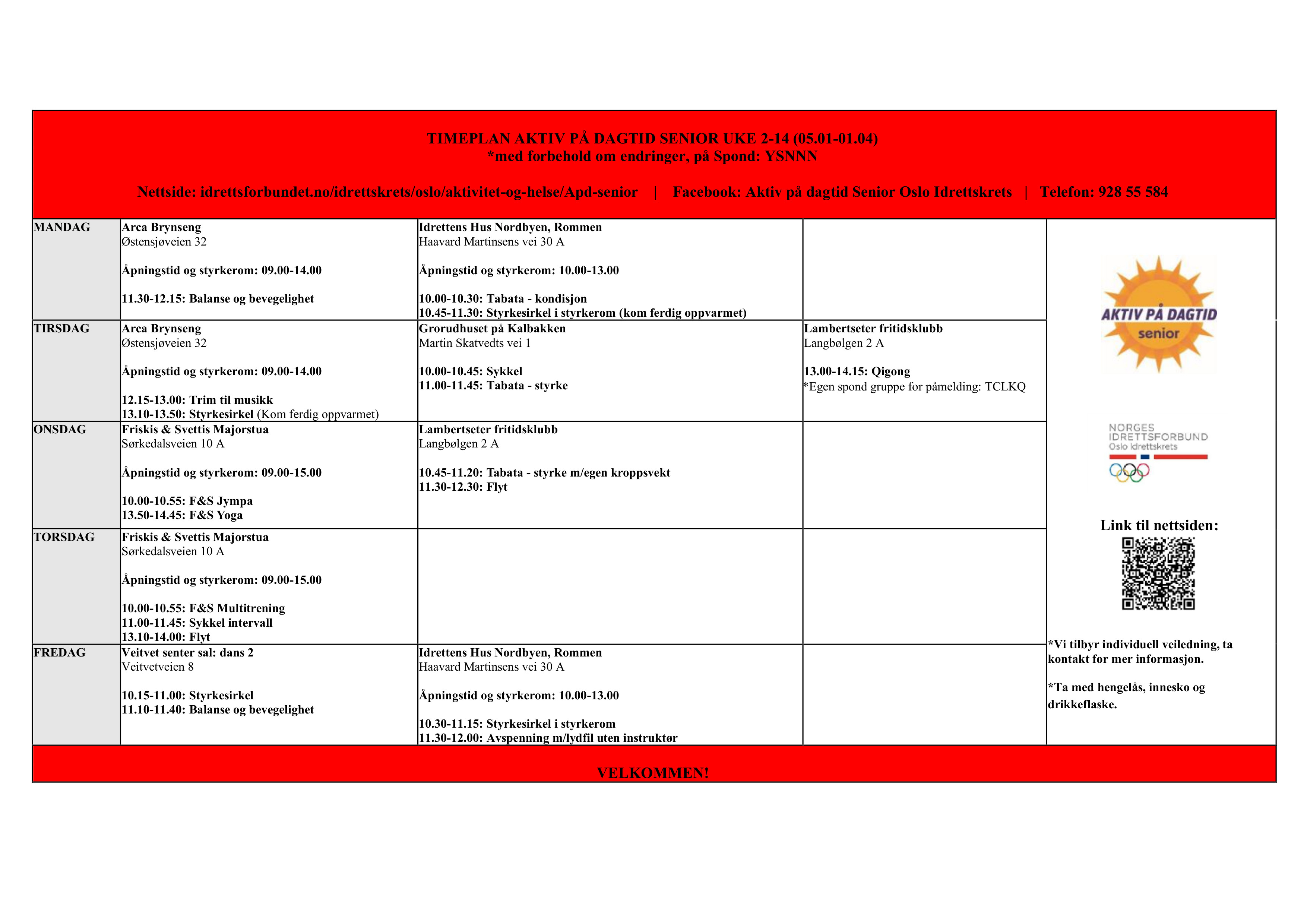 - Les timeplanen nøye, og møt opp.