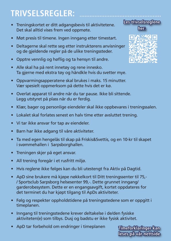 Hvis reglene ikke følges kan du bli utestengt fra Aktiv på Dagtid.